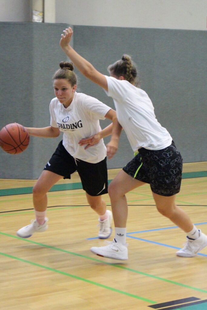In allen Gruppen stehen Grundlagen wie Passen, Dribbeln, Werfen und natürlich auch Verteidigen auf dem Programm. Die Schwerpunkte werden zu Beginn des Camps in der Trainingsgruppe festgelegt, so dass sich jede:r Teilnehmer:in einbringen und entsprechend verbessern kann.