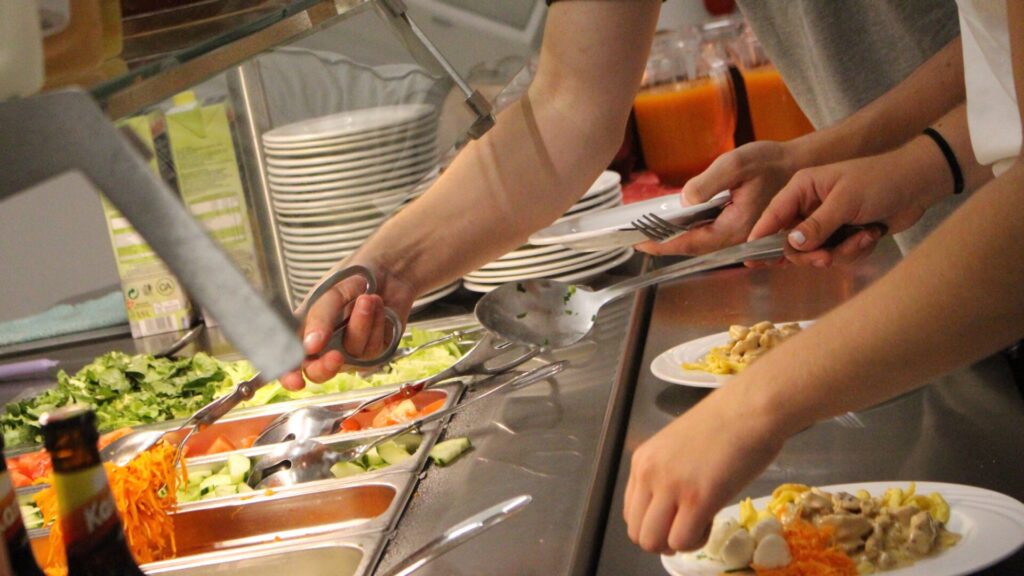 Das Mittag- und Abendessen wird von unseren Köchen frisch zubereitet und am Buffet ausgeteilt. Zu diesen beiden warmen Mahlzeiten gibt es außerdem verschiedene Salate und Desserts. So ist garantiert, dass das Essen auf die besonderen Bedürfnisse von Sportler:innen abgestimmt ist und du immer satt wirst.